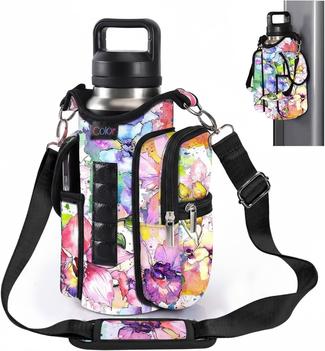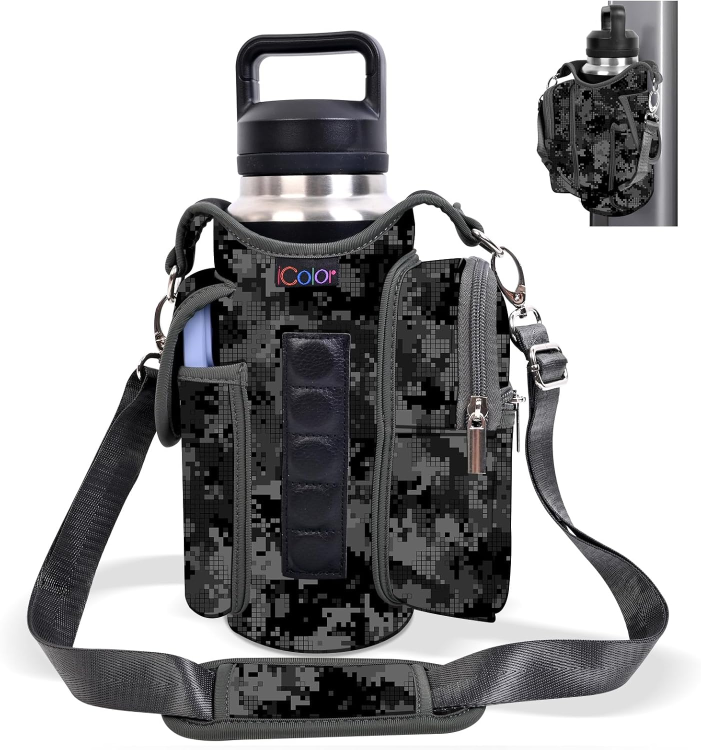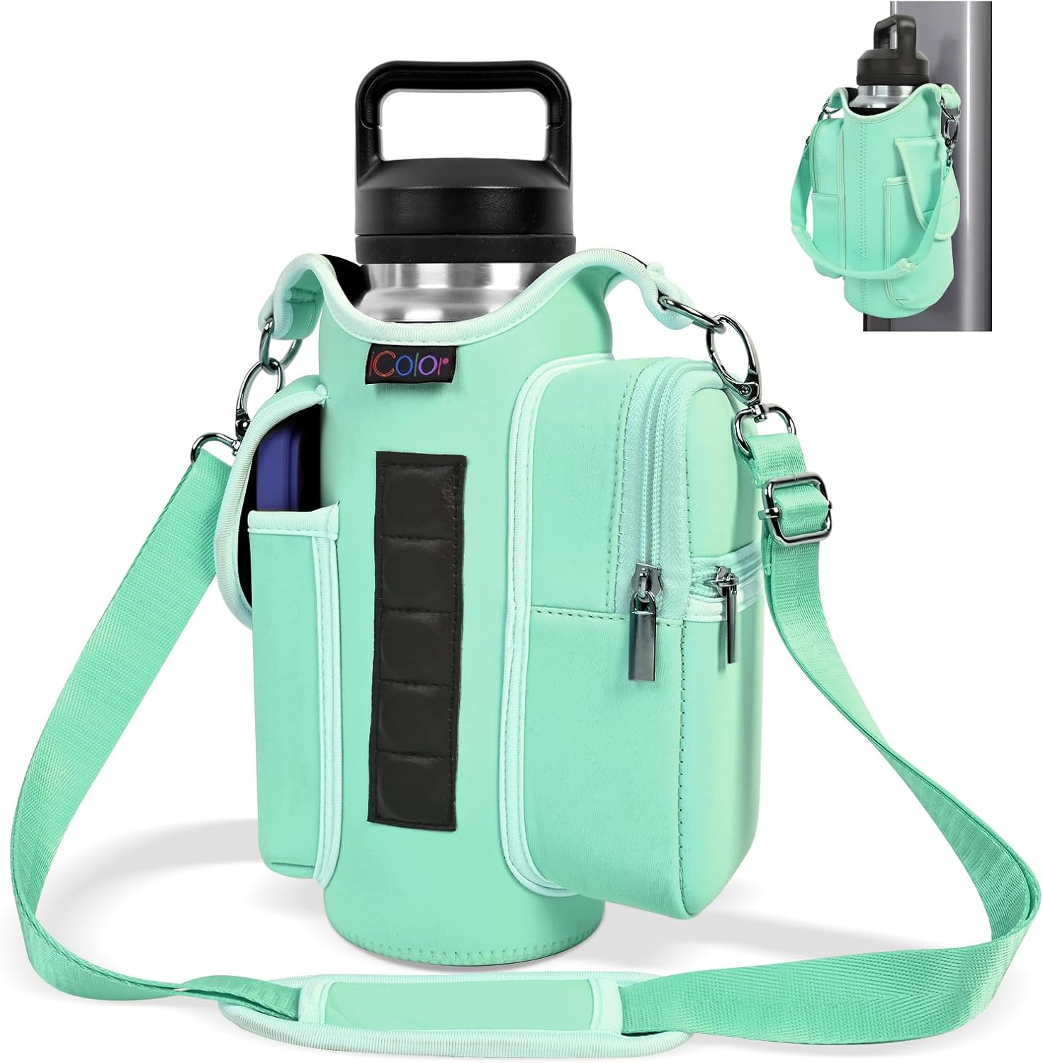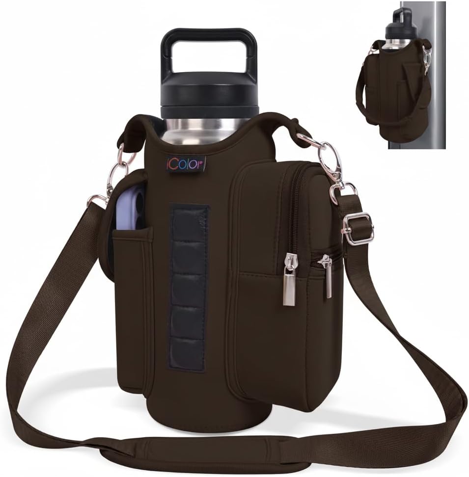 Multi-Scene Use: Comes with a handle and adjustable shoulder strap for easy carrying, icolor Magnetic gym water bottle sleeve bag holder suitable for gym, basketball,outdoor activities, travel, walk the dog and more.great gym related gifts for gym lovers.
