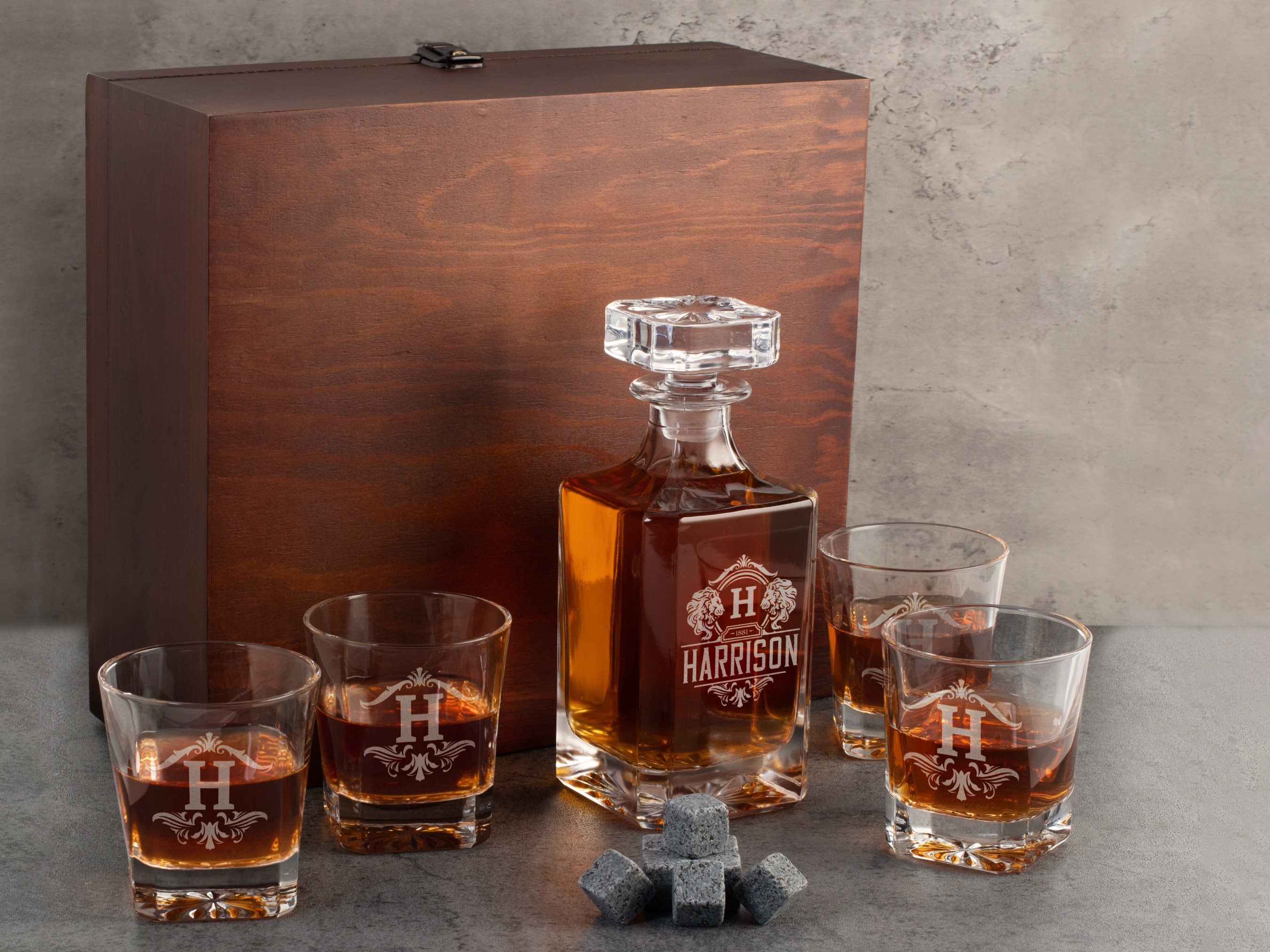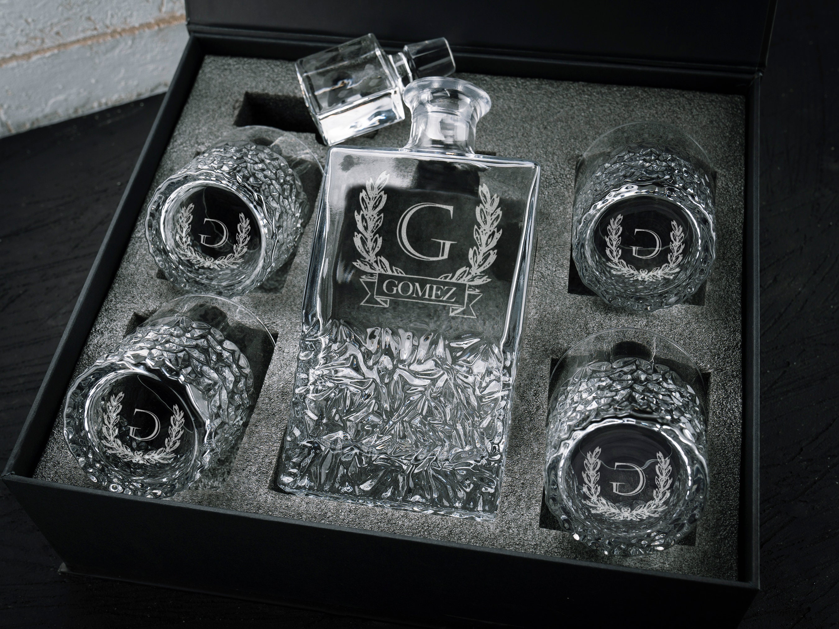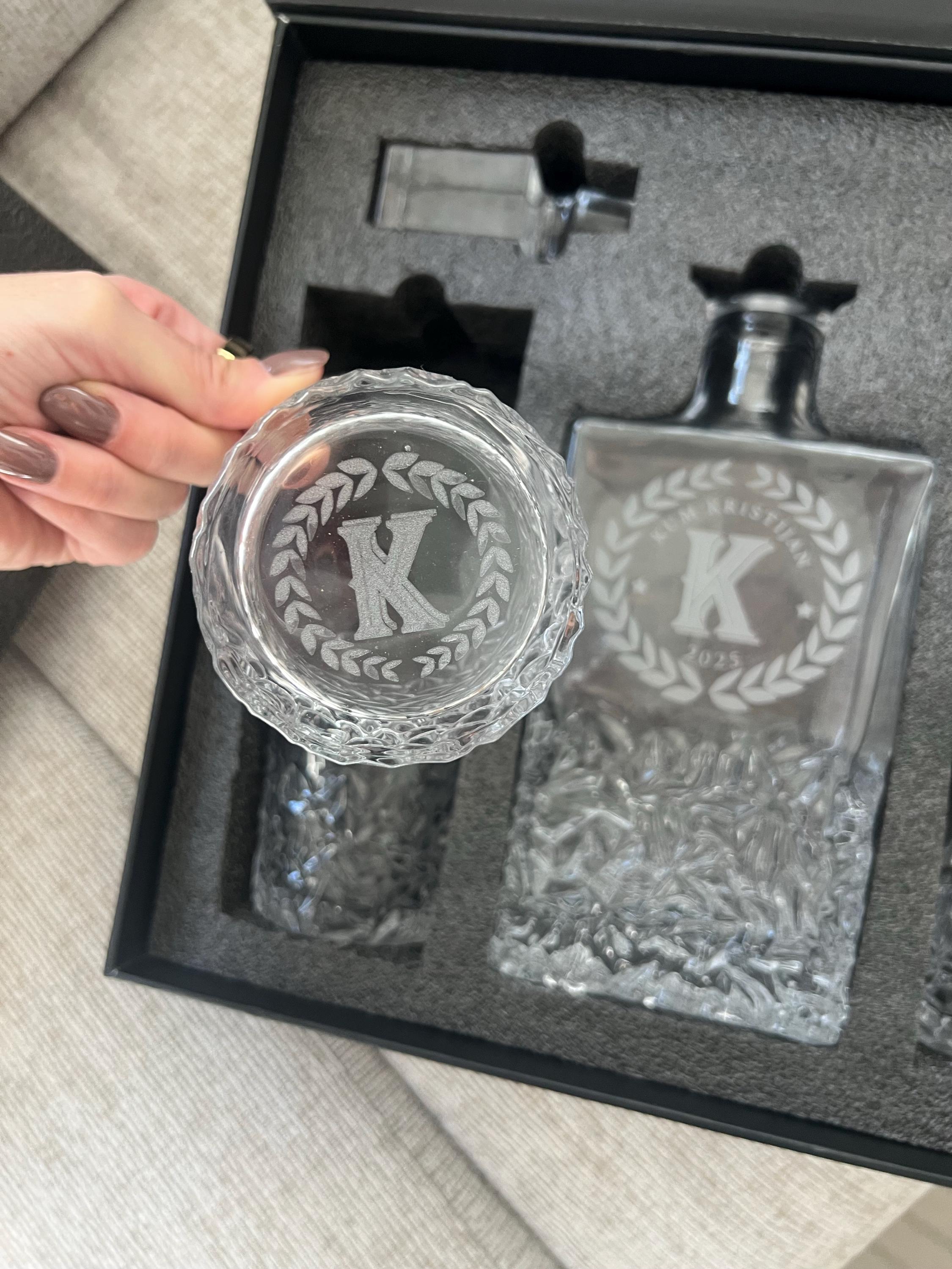 Elevate your home bar with a personalized whiskey decanter set. This elegant combination of a glass decanter and matching glasses is designed for sophistication. Each piece can be hand-engraved with a name, initials, or a special date, transforming the set into a unique statement.