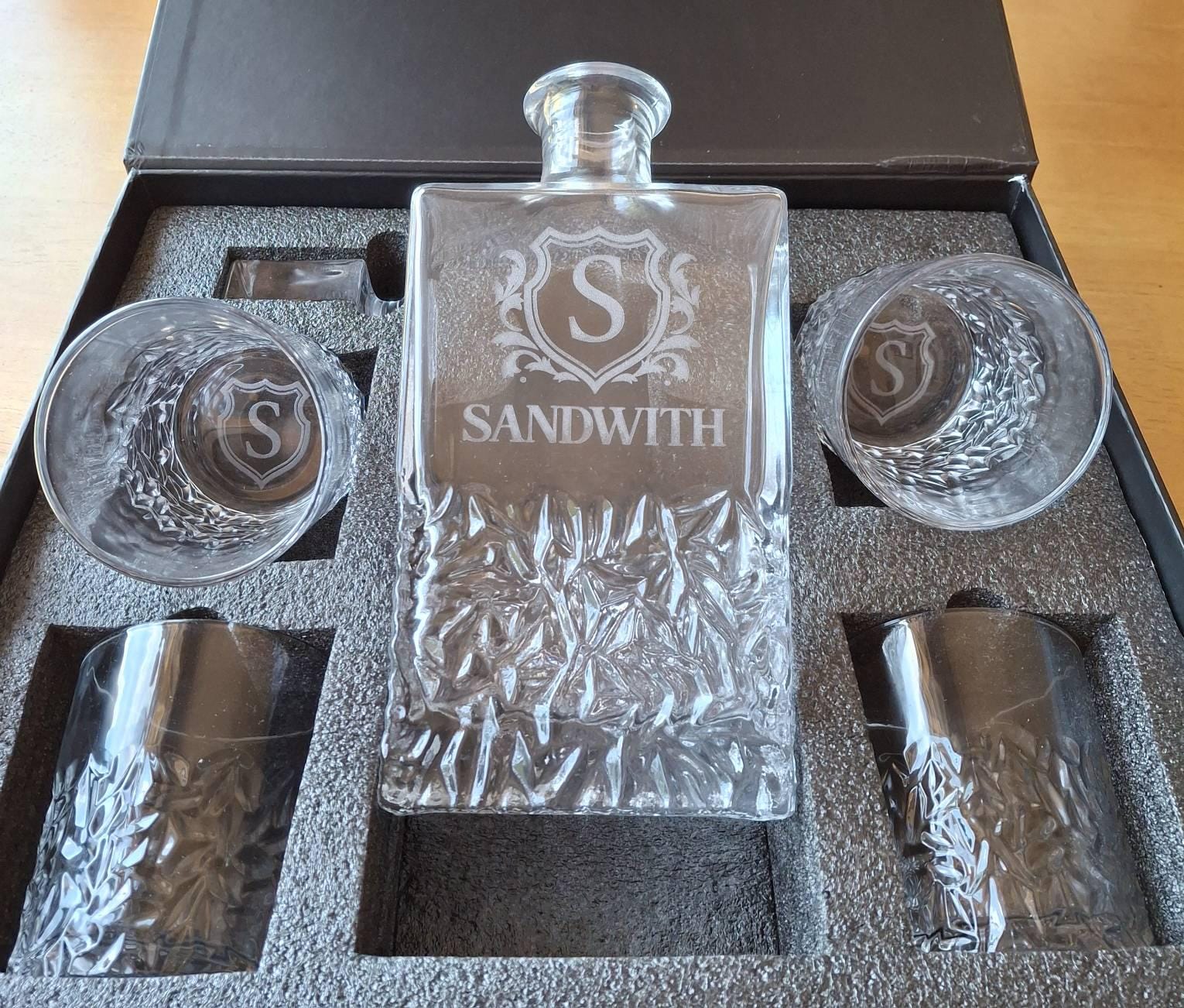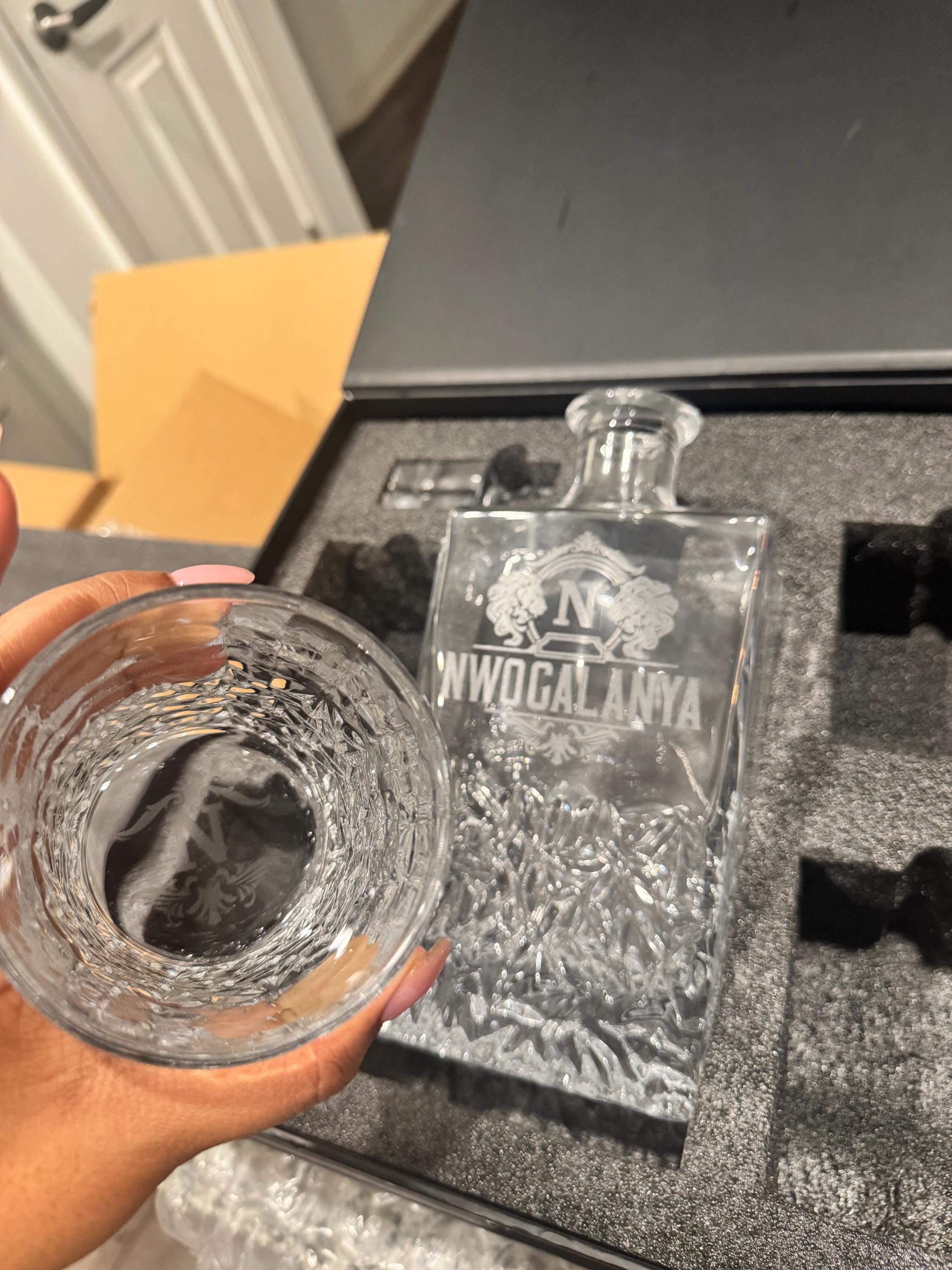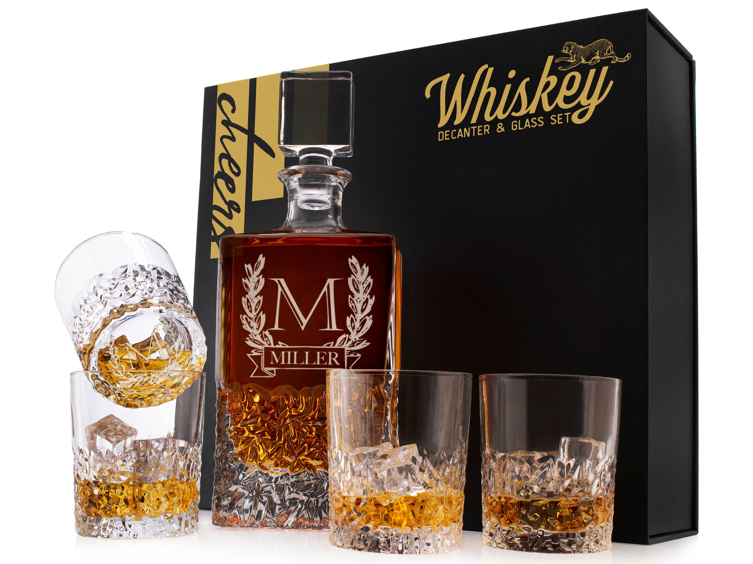 MAKE YOUR LOVED ONES FEELS SPECIAL: Our Personalized Whiskey Decanter Set is the best way to complete your drinking experience. This whiskey decanter set comes in a stunning gift box, with an exquisite design intended to create an instant WOW feeling. The unveiling of the bourbon decanter set from a cushioned packaging is bound to impress and makes a perfect gift.